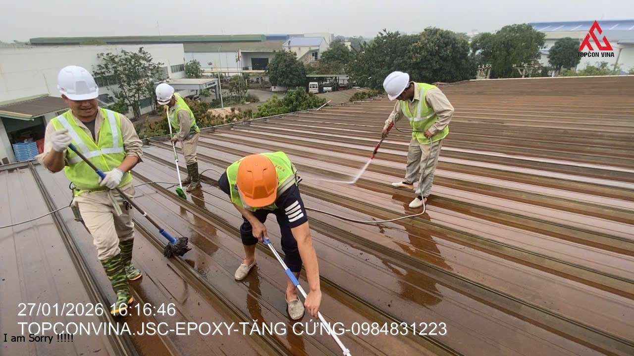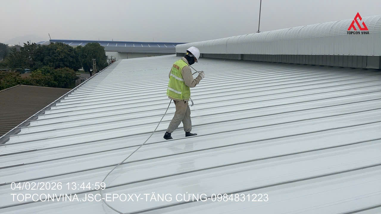 Với kinh nghiệm thi công sơn công nghiệp nhiều năm, Công ty TOPCON VINA đã triển khai hạng mục sơn chống rỉ cho mái nhà máy sản xuất, đảm bảo tiêu chuẩn kỹ thuật, an toàn và tiến độ theo yêu cầu của chủ đầu tư.